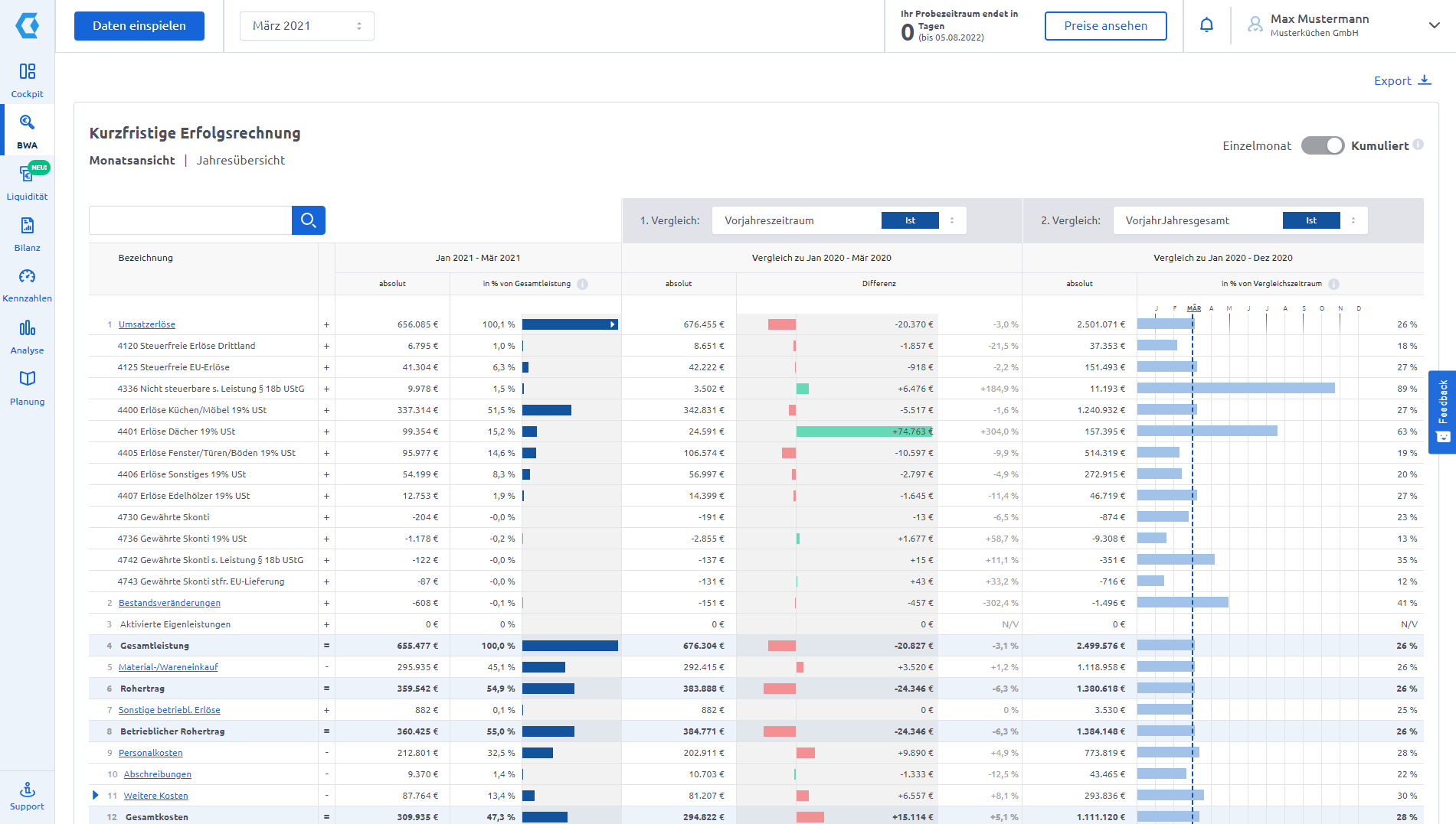Abbildung: Screenshot der Kurzfristigen Erfolgsrechnung von Companyon