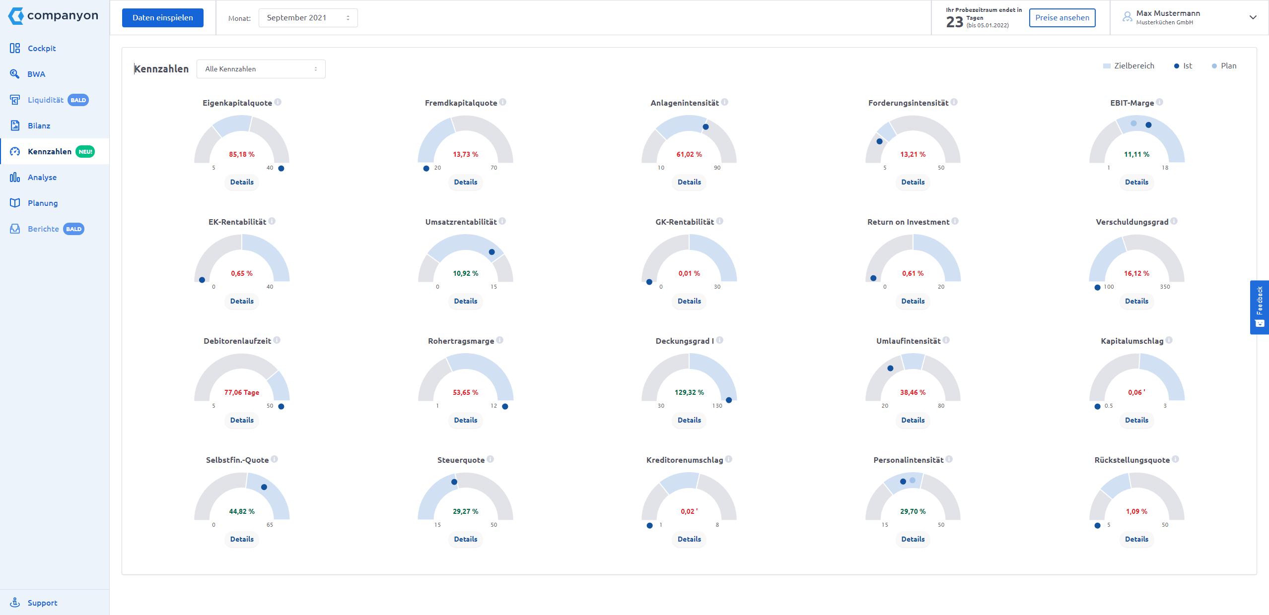 Das Kennzahlen-Modul ist Bestandteil der Companyon Pakete Professional und Professional+. Einen Überblick über die Module und Preise finden Sie hier.